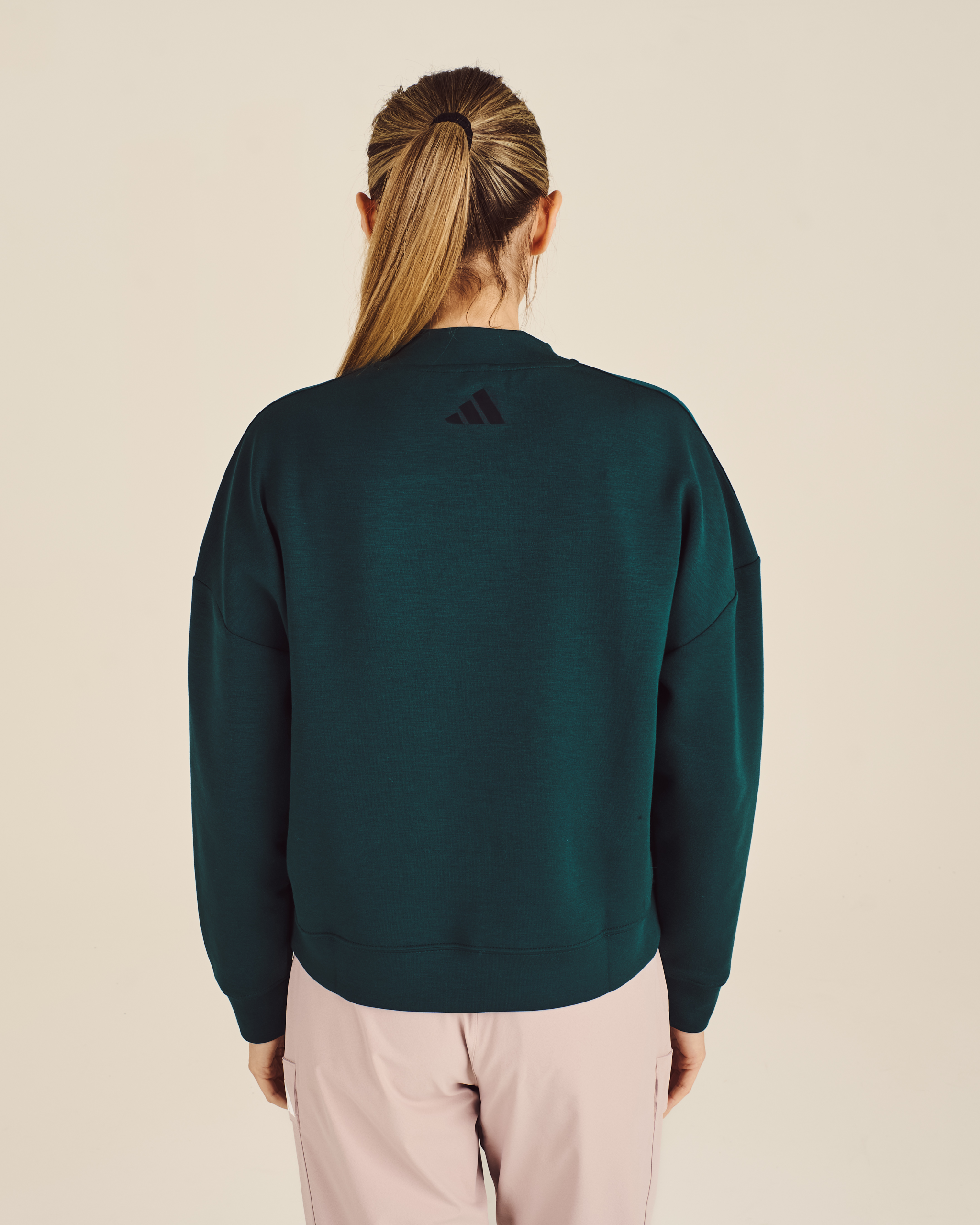 A loose fit. this adidas sweatshirt fits comfortably over a base layer for added warmth on chilly days. Drop shoulders and built-in stretch ensure a full range of motion. and a mockneck finishes the look.