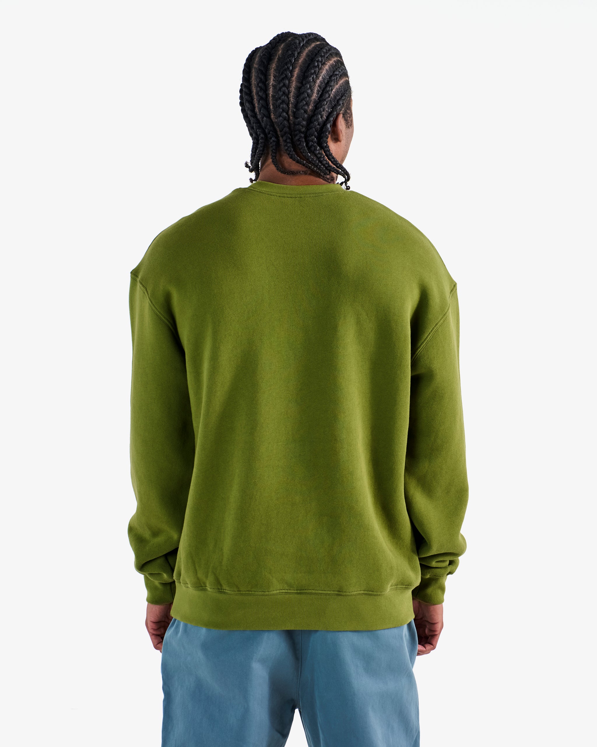 This Crew Fleece is made from 100% cotton and offers a soft. cozy feel perfect for layering or wearing solo. Featuring cotton ribbing at the neck. cuffs. and waistband for added durability and a snug fit. the sweatshirt is both functional and stylish—a perfect combo for this elevated essential.