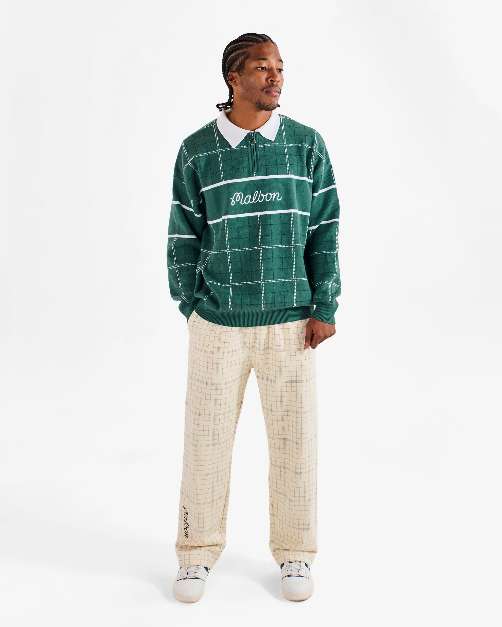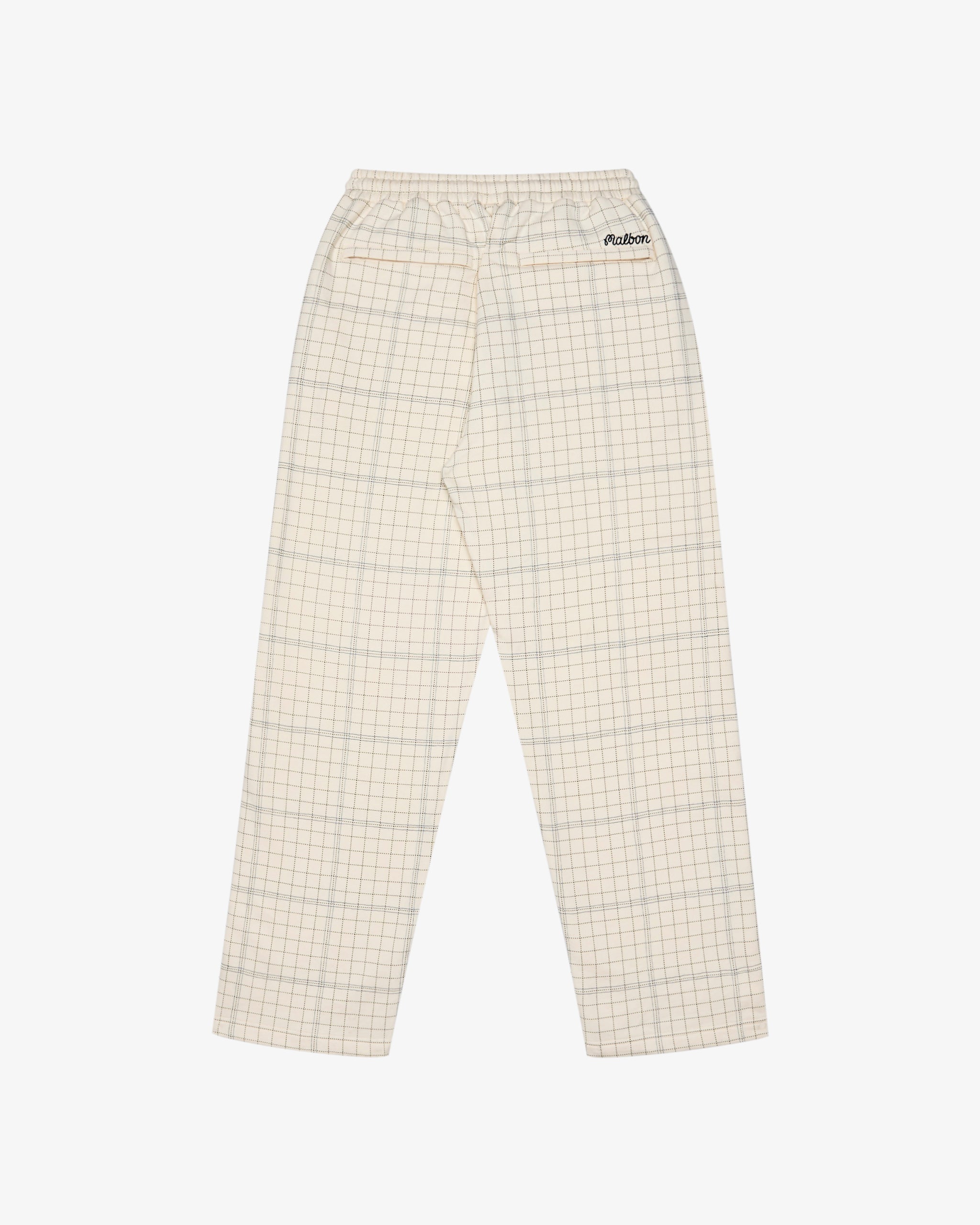 Made of soft cotton fleece. our Bon Script Plaid Sweatpants lift lounging to new heights. With a drawcord waist. pocket storage. and an effortlessly relaxed fit. they’re the pants you throw on for countless everyday occasions.
