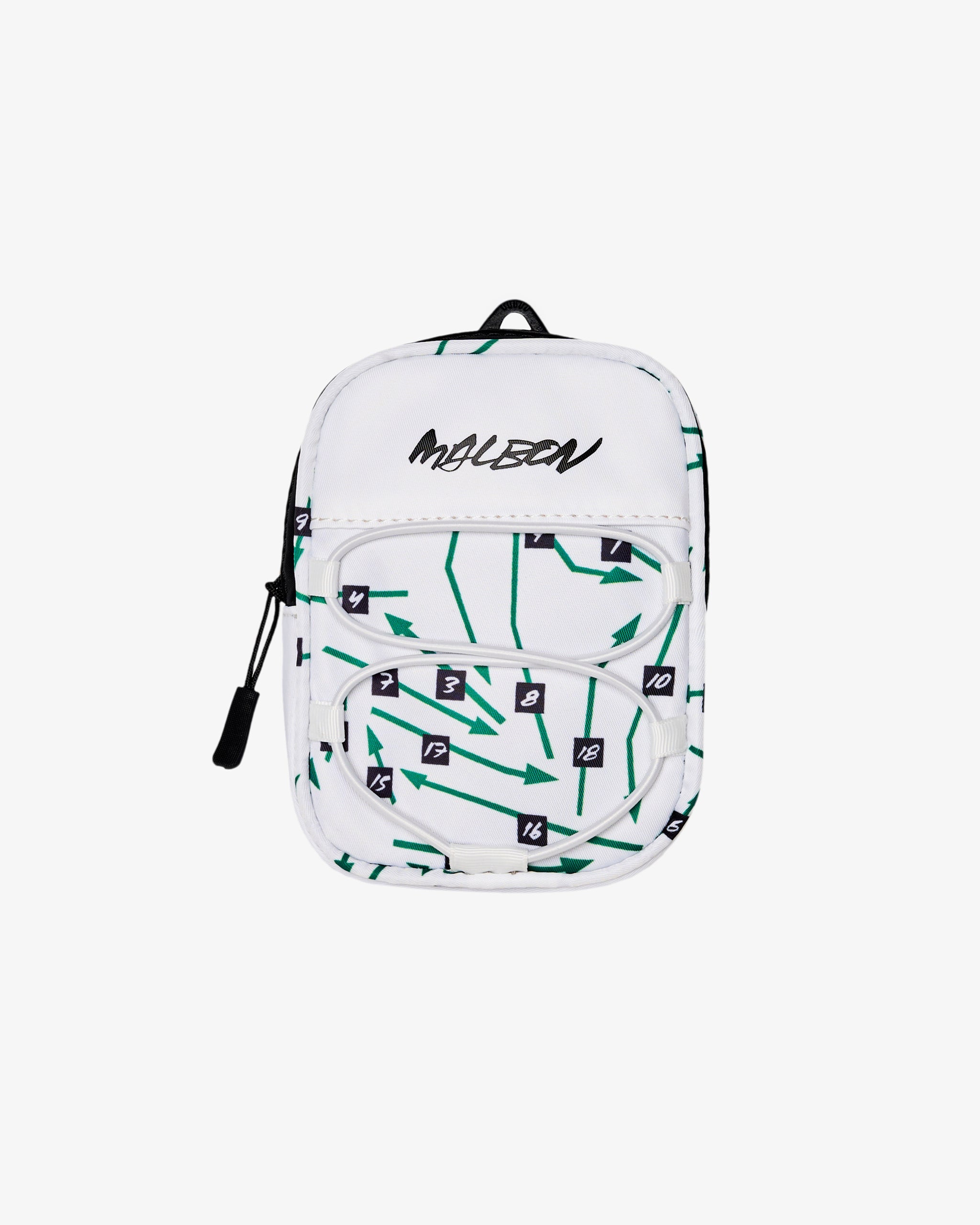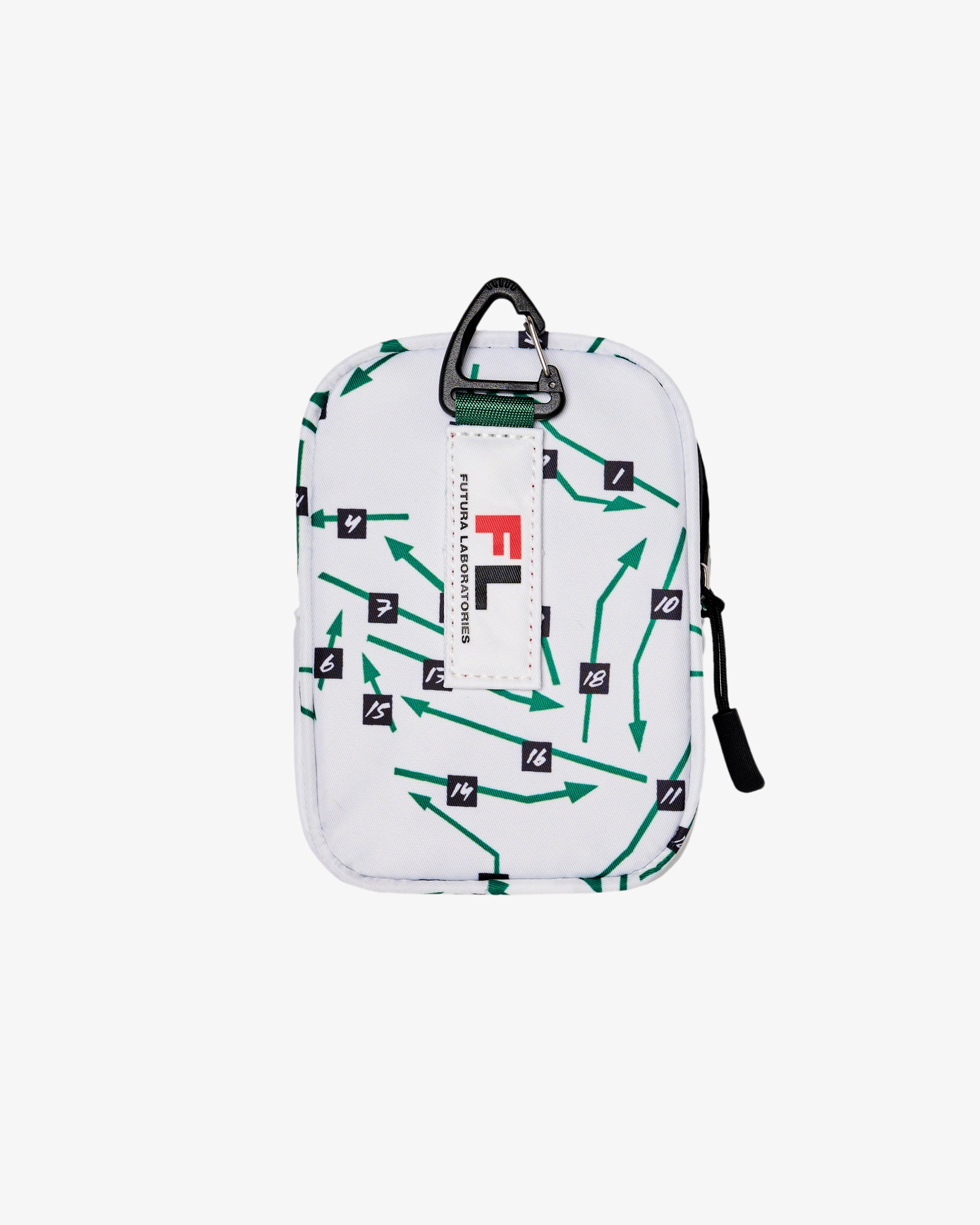 Constructed from durable. structured nylon. this rangefinder case offers extra resilience against the elements. Features include a sturdy carabiner for versatile carrying options. a zippered closure to secure storage of your device. and screenprinted logos and graphic from our collaboration with Futura Laboratories.