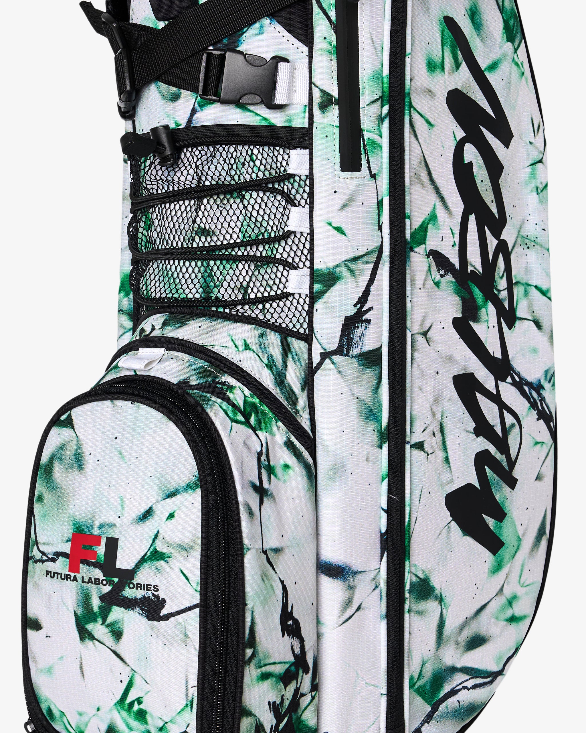 Showcasing an all-over graphic inspired by the artist’s abstract work. the Futura Walking Bag is crafted from durable 100% nylon rip-stop fabric. ensuring it can handle all your adventures on the course. The stand bag features multiple zippered pockets. including a convenient mesh rangefinder pocket and a magnetic closure pocket on the front for quick access to essentials. With a lightweight design??under six pounds??and cross back straps with clips. it provides maximum comfort for all-day rounds.