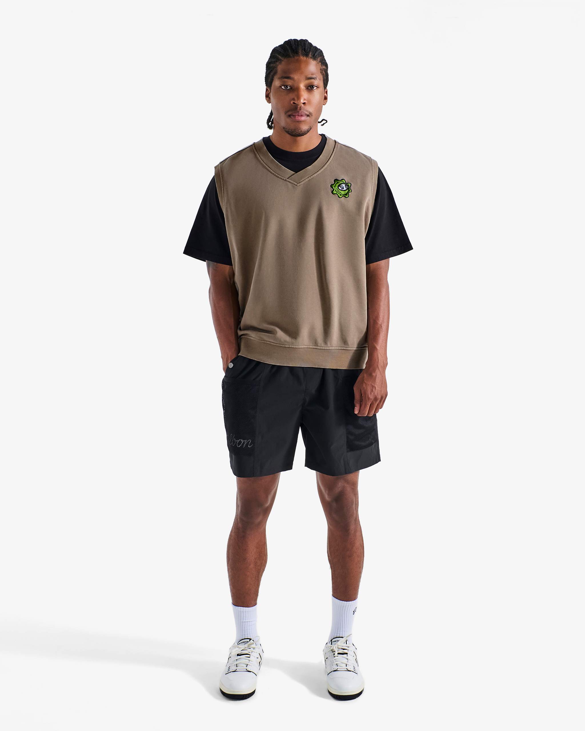 Part of our collab with Glo Gang. this Fleece Vest has a soft texture with a ribbed trim along the armholes and waistband. accentuating its shape and adding subtle detail. Its timeless V-neck design makes it an ideal layering piece.