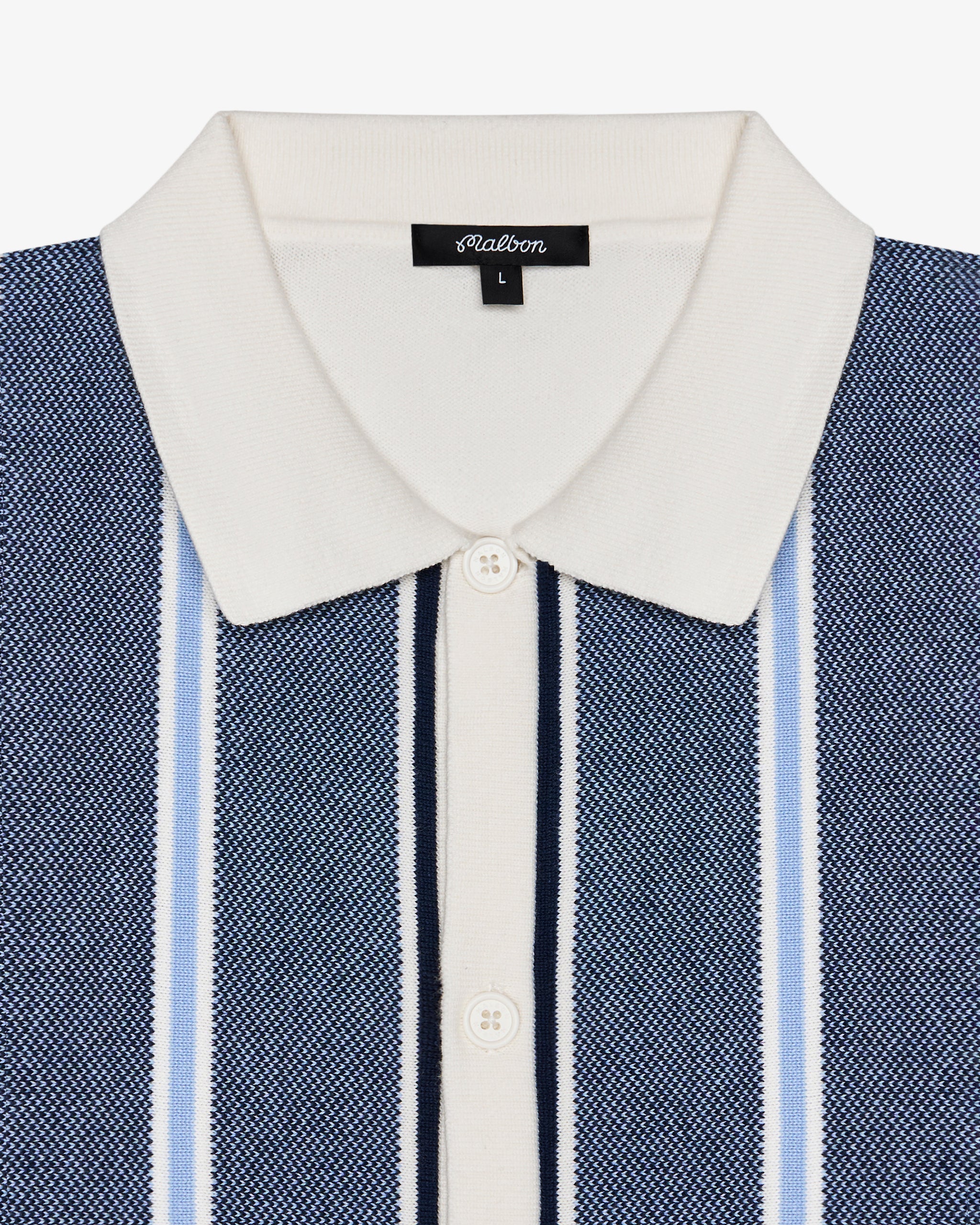Crafted entirely from soft. breathable cotton. the Jude Knit Polo is a comfortable must-have for the season ahead. Its relaxed. button-up design has a polished look. complemented by distinctive knit striping across the front.