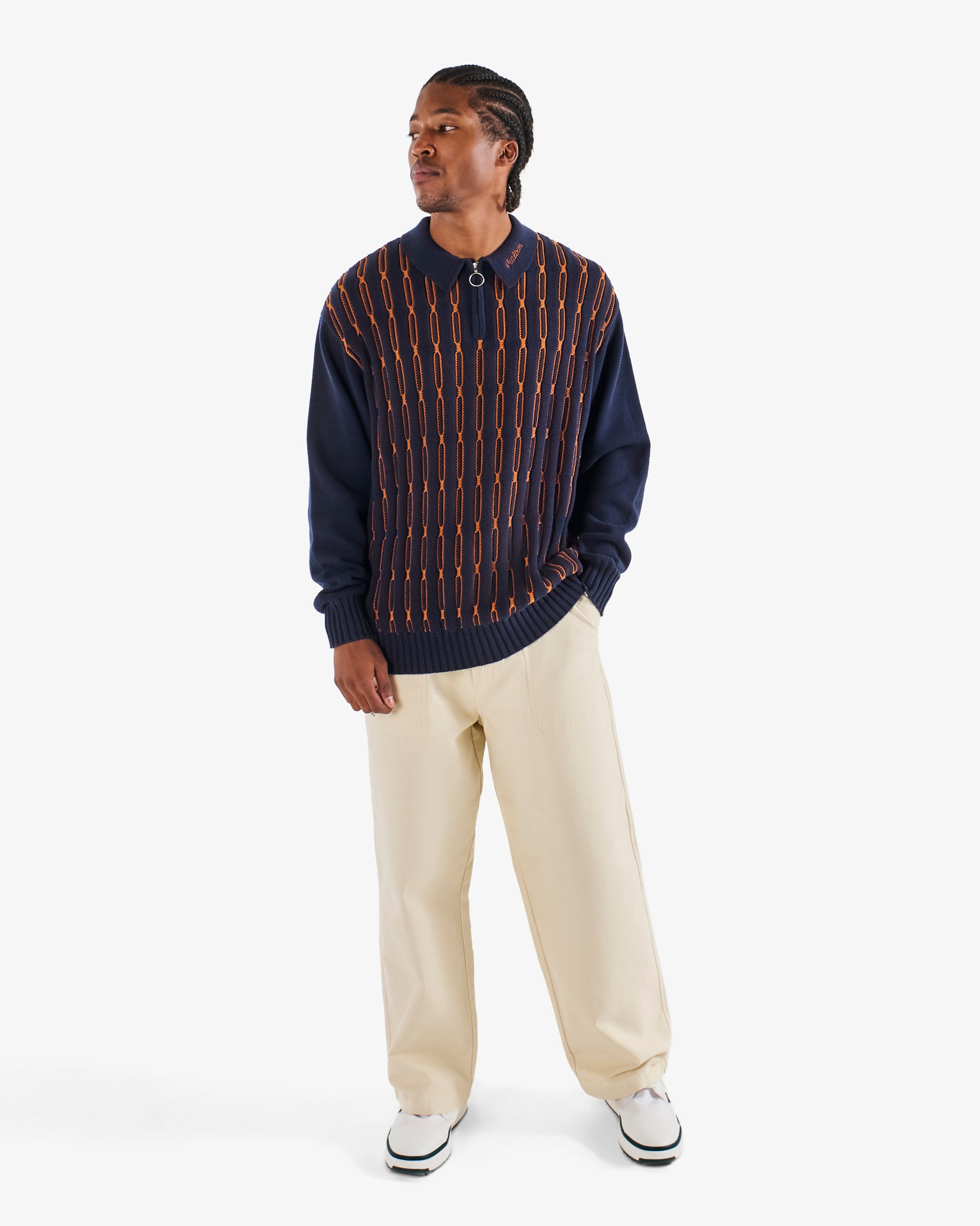 Crafted entirely from cotton. our Links Polo Sweater features a quarter-zip. ribbed trim. and a repeating intarsia links pattern. Its clean design. paired with extra visual interest. make this piece a definite standout from FW25.