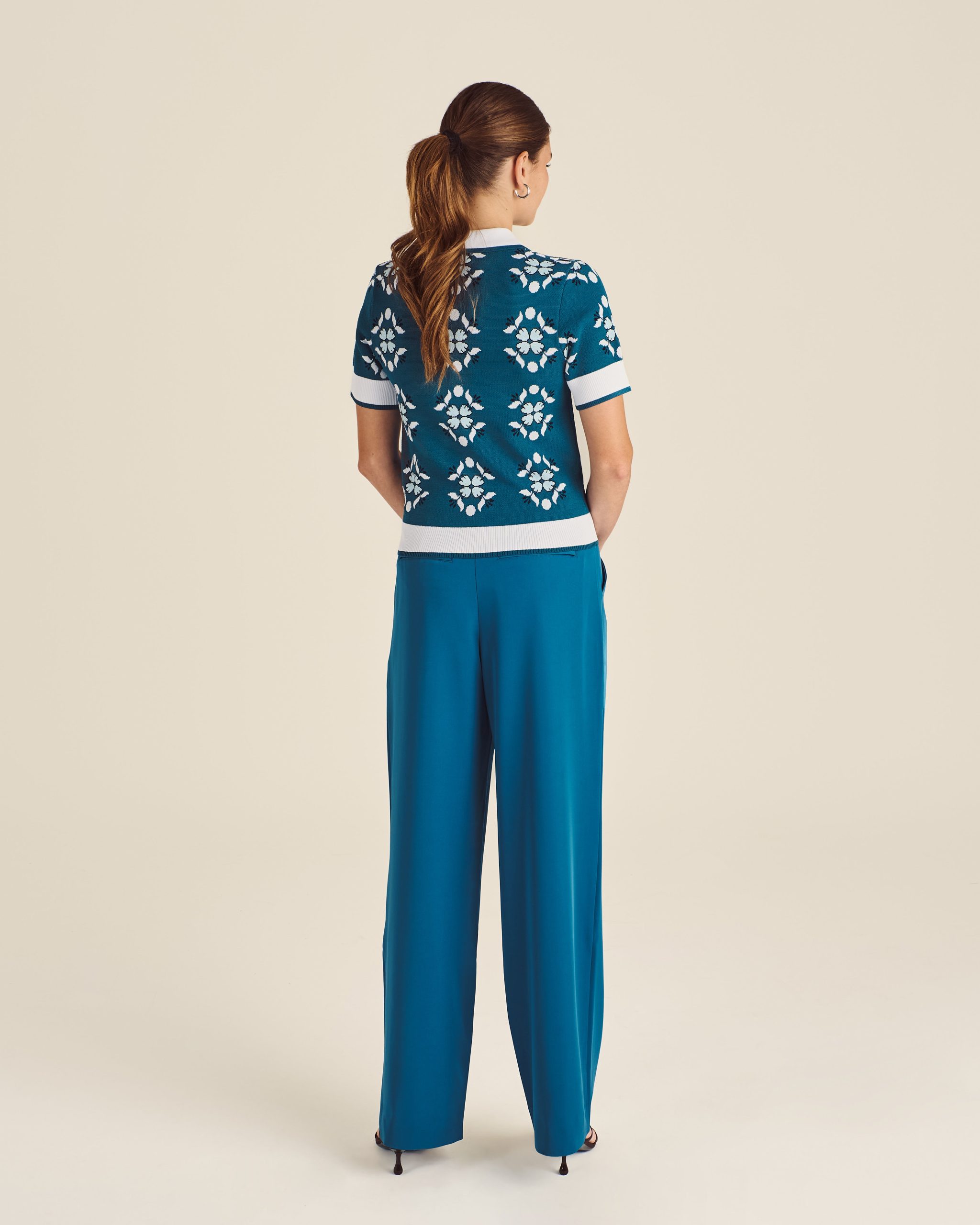 The Lucia Quarter Zip Polo is a standout piece on the course. Featuring an all-over pattern and ribbed trim. it ensures a comfortable fit while thoughtful details illustrate the quality craftsmanship.