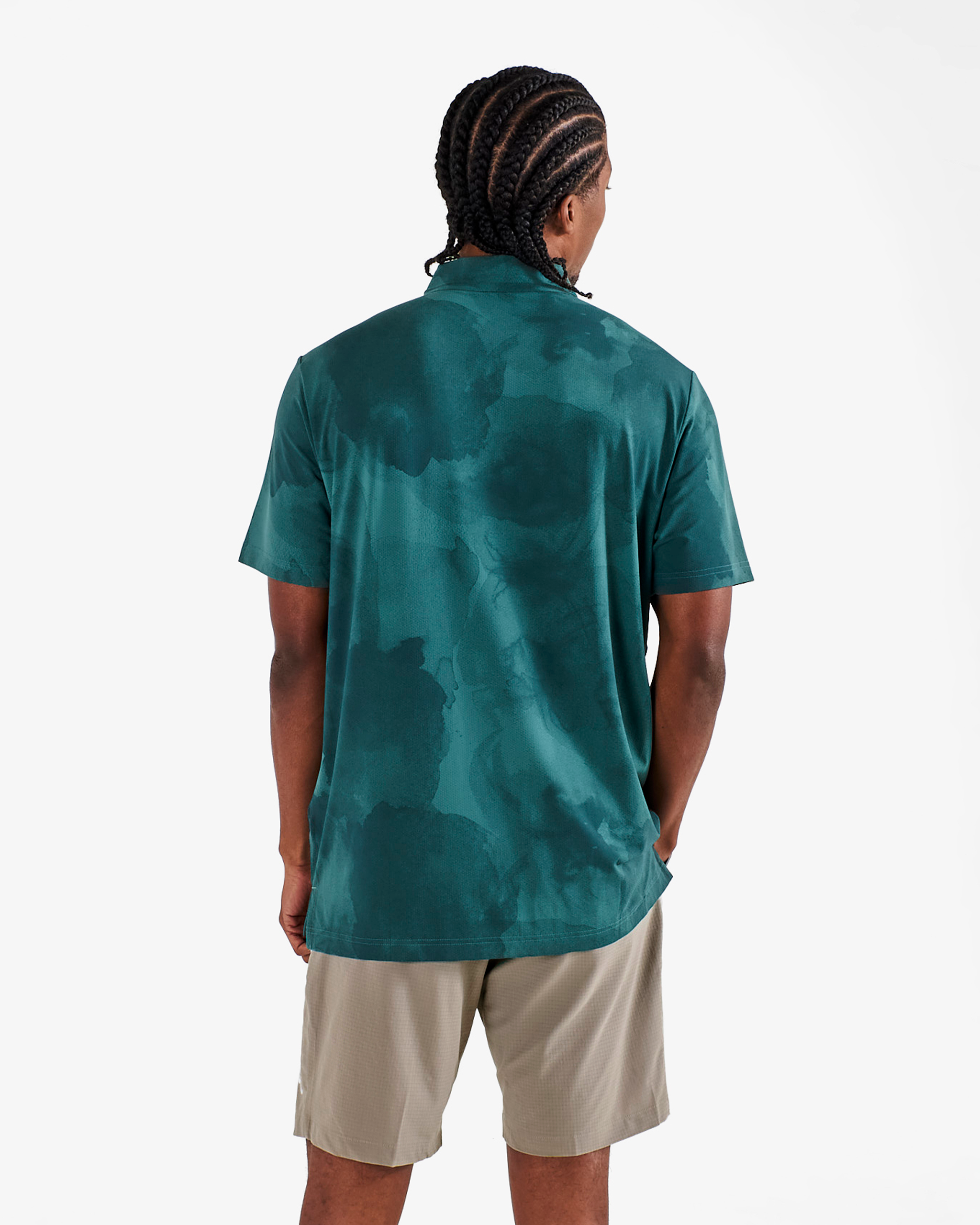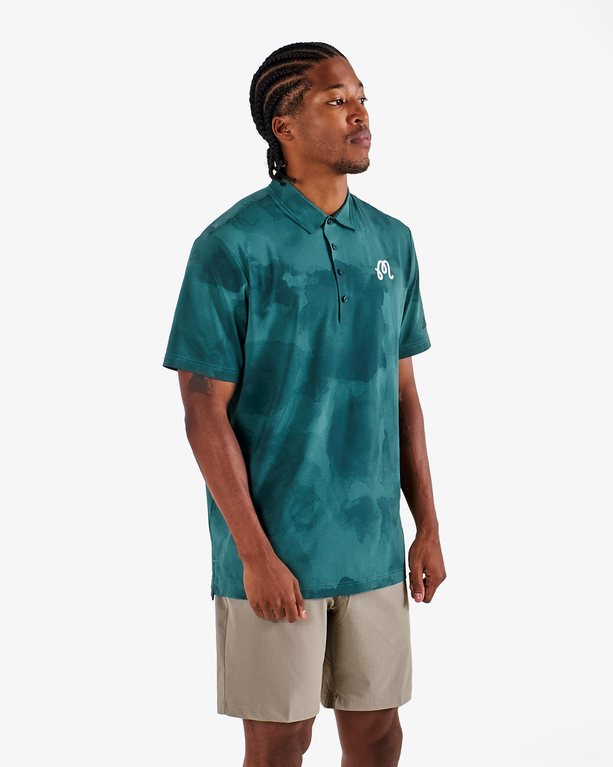 • Four-button front with polo collar
