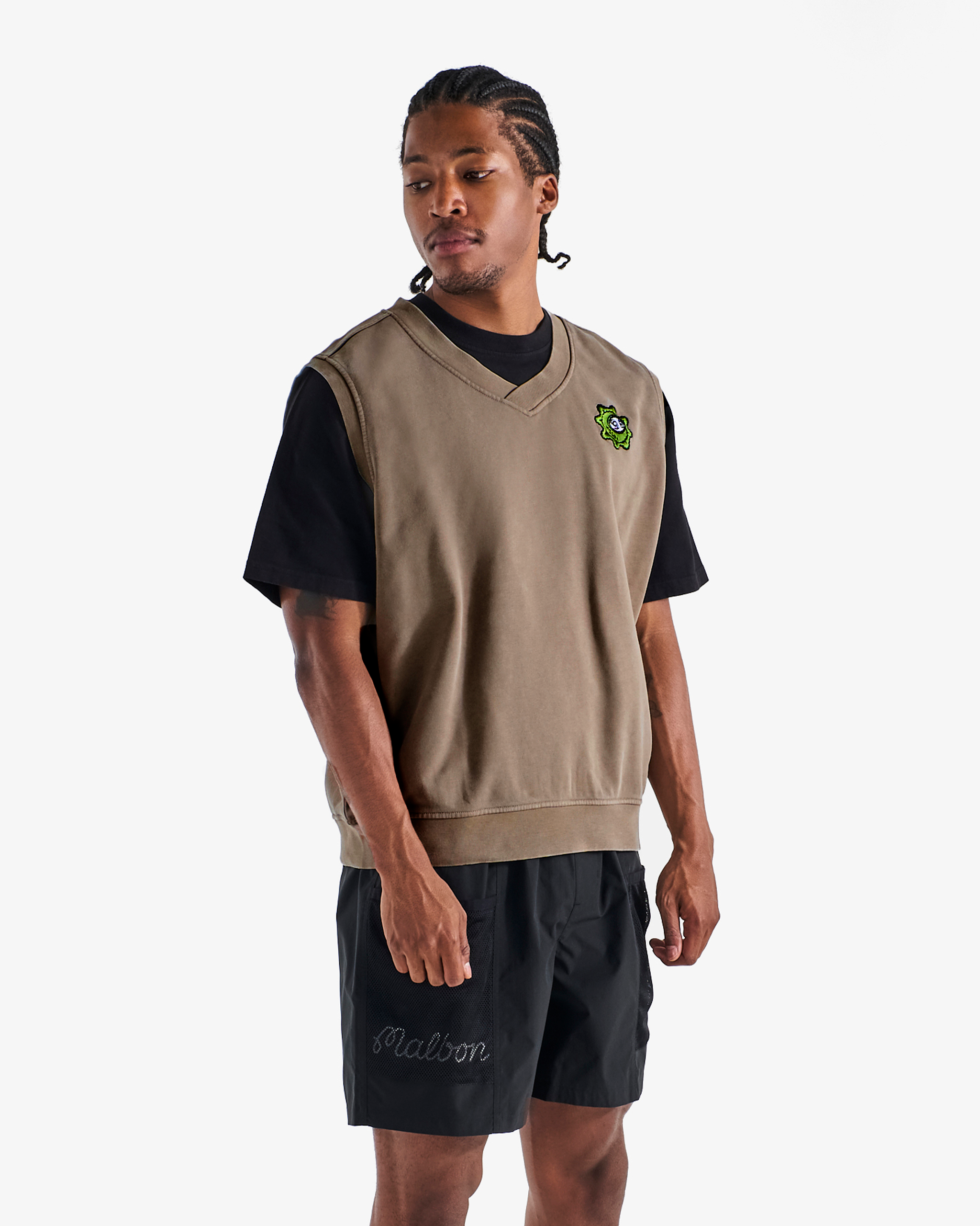 Part of our collab with Glo Gang. this Fleece Vest has a soft texture with a ribbed trim along the armholes and waistband. accentuating its shape and adding subtle detail. Its timeless V-neck design makes it an ideal layering piece.