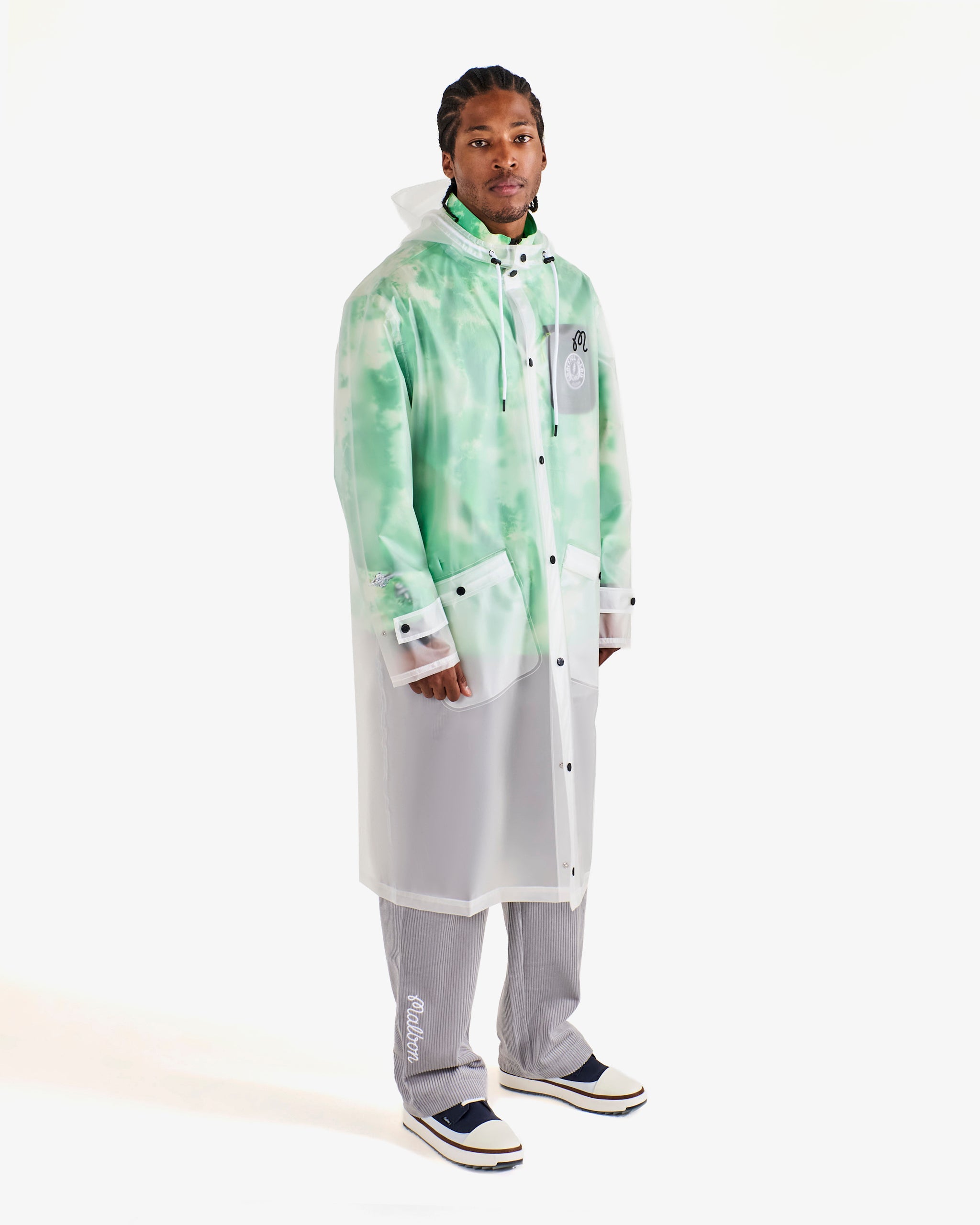 Our Grateful Dead Stealie Rain Coat is designed to handle the elements. Branded snap buttons. a drawcord hood with a cap style brim. and heat sealed seams keep you protected. while side welt pockets add everyday function. It’s finished with the band’s signature Steal Your Face graphic across the back.