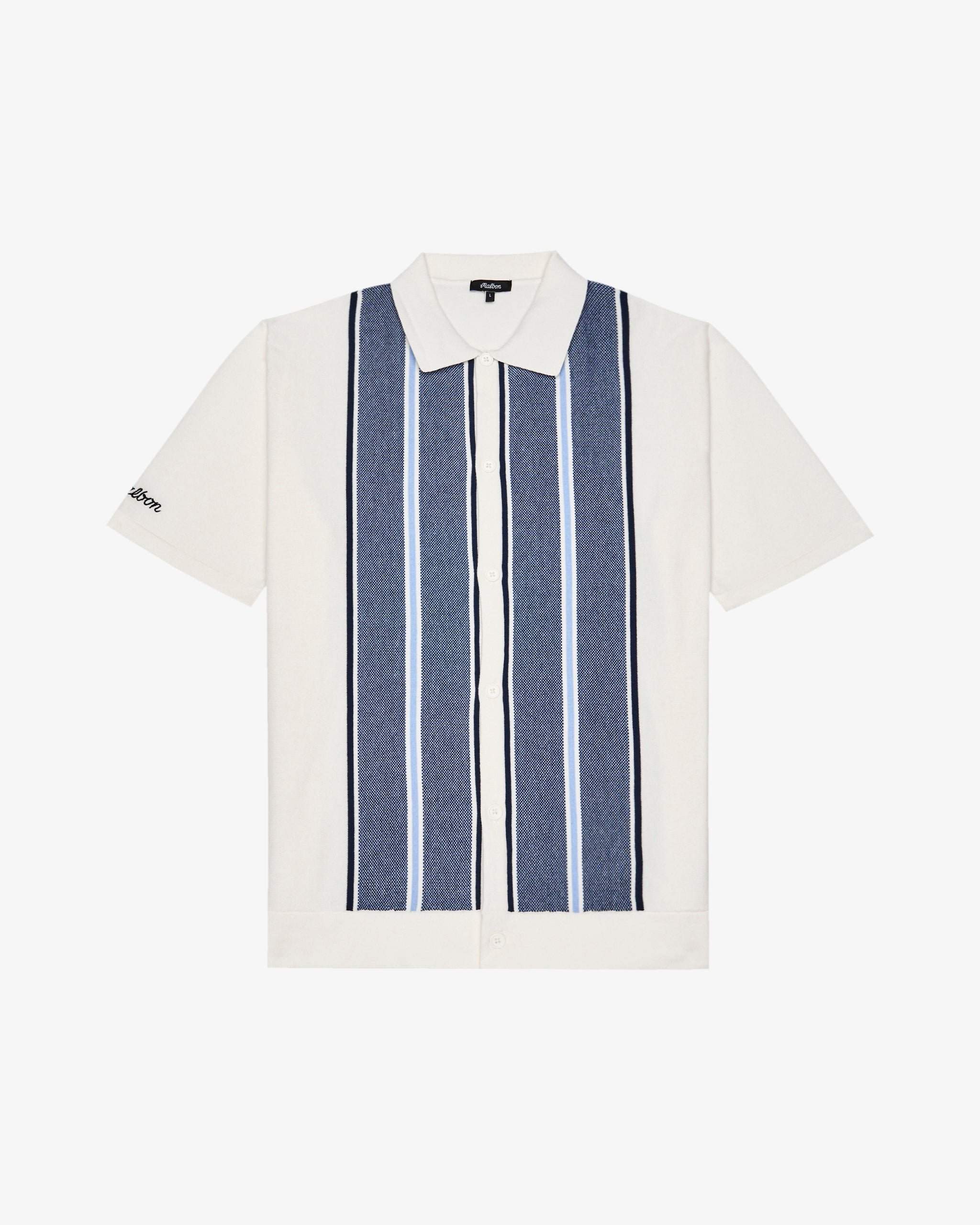 Crafted entirely from soft. breathable cotton. the Jude Knit Polo is a comfortable must-have for the season ahead. Its relaxed. button-up design has a polished look. complemented by distinctive knit striping across the front.