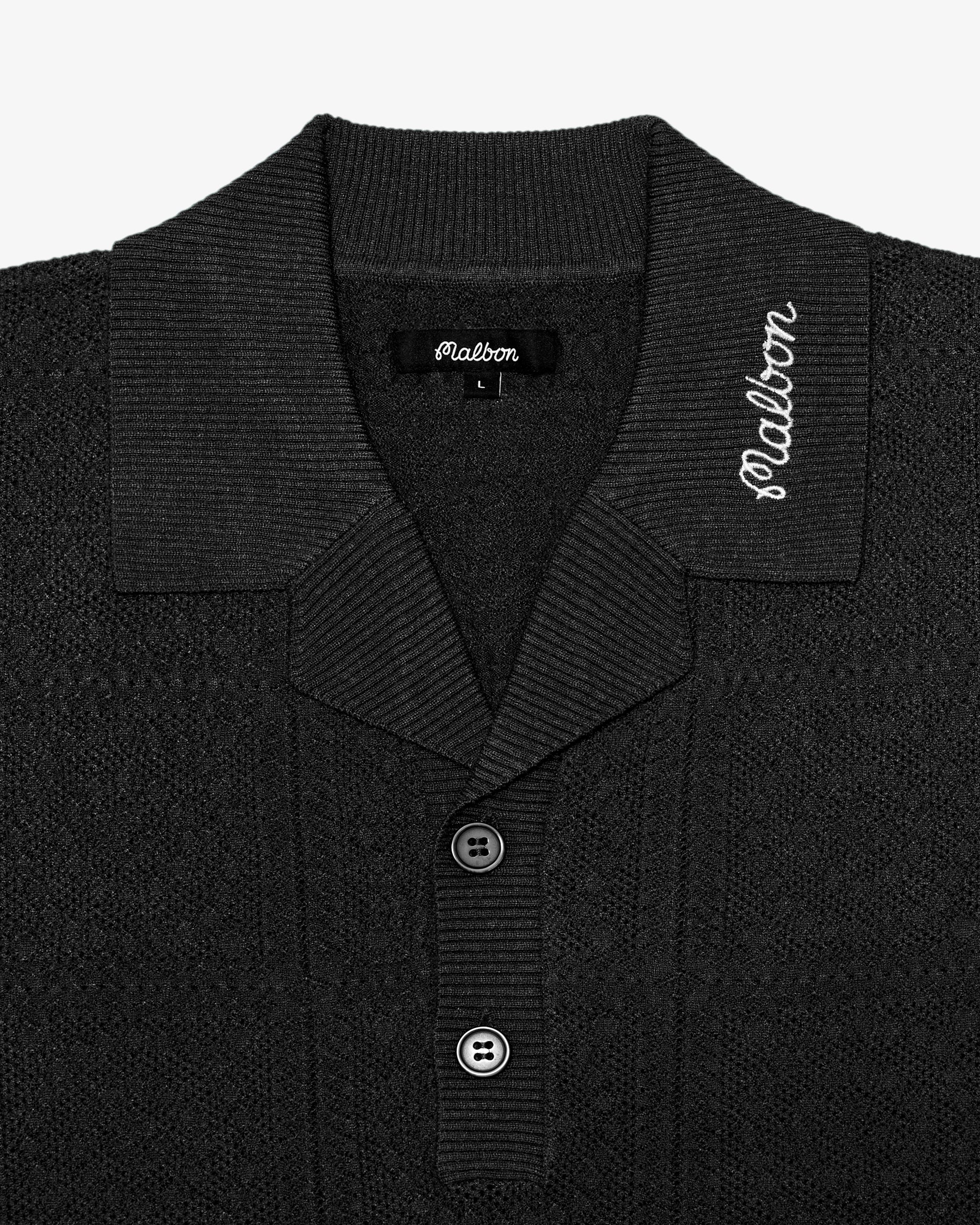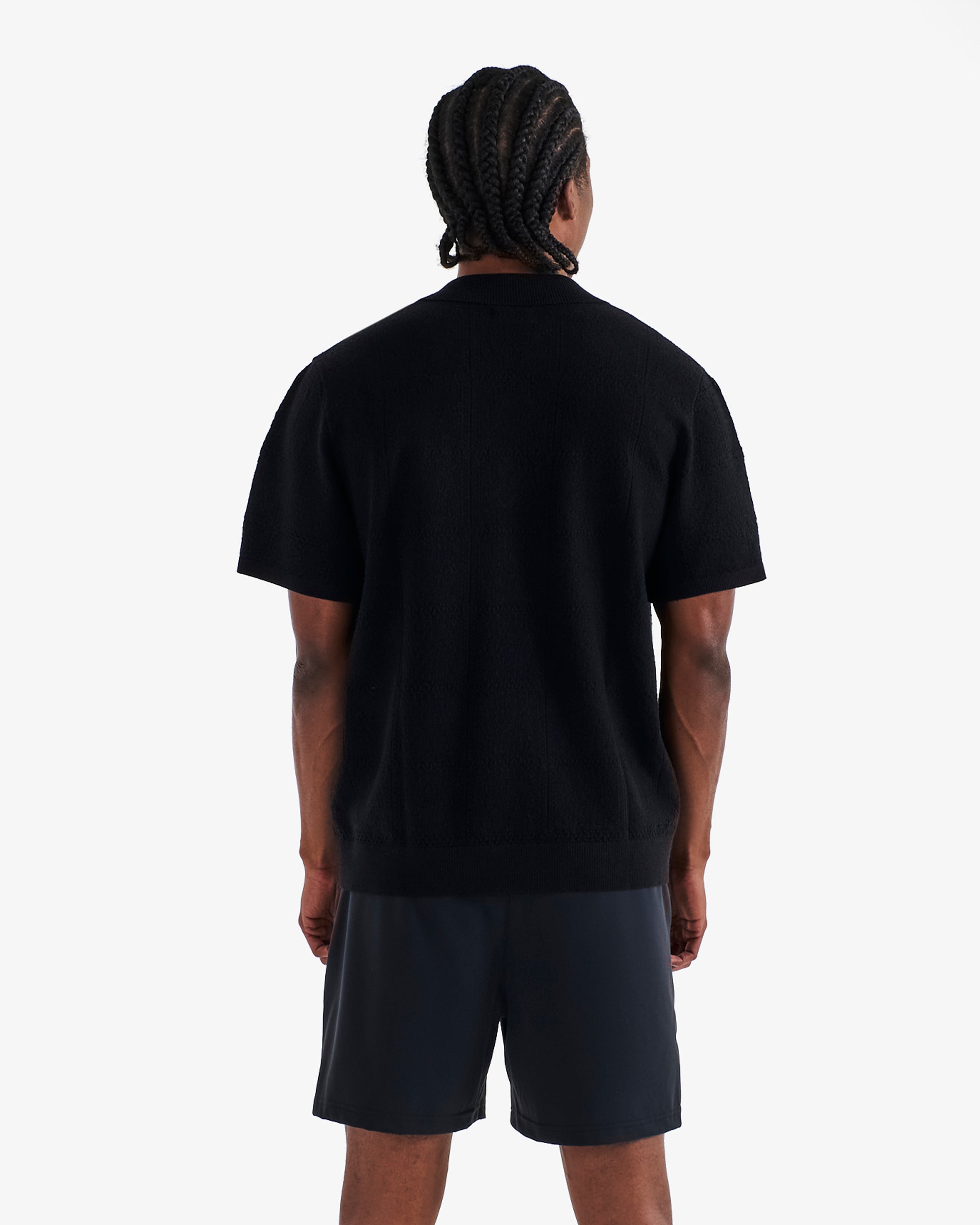 Crafted of a soft crochet knit. our Resort Polo reflects coastal ease with an open camp collar and perfectly relaxed cut. The subtle open weave construction. showcasing an all-over intersecting pattern. provides excellent breathability. making it ideal for warmer temperatures.