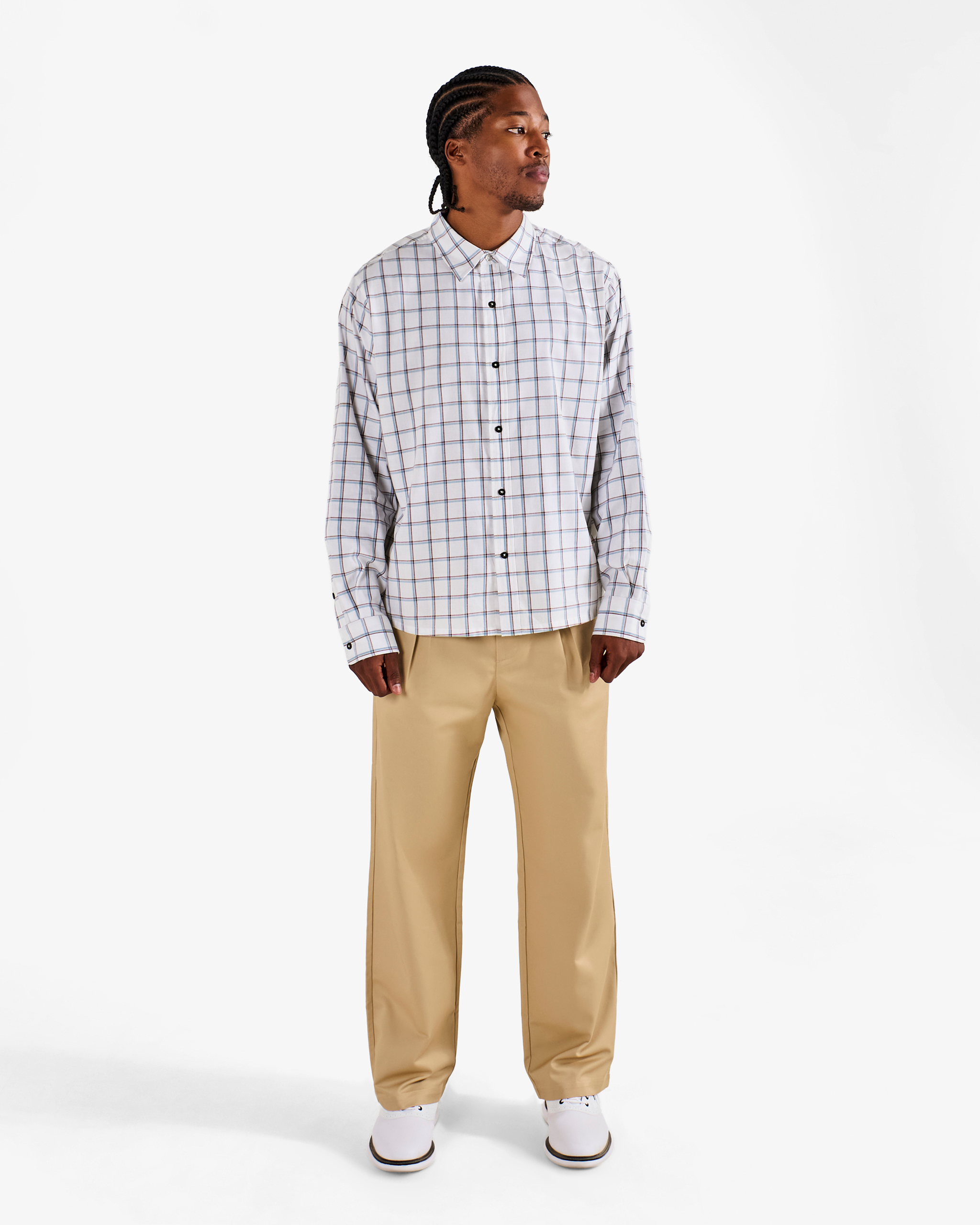 Our Tattersall Shirt brings heritage plaid into sharp focus. Crafted in 100% cotton. it features a box pleat at the back for unrestricted movement and a double yoke that reinforces the shoulders. Subtle signature embroidery completes the piece??understated quality that speaks volumes.