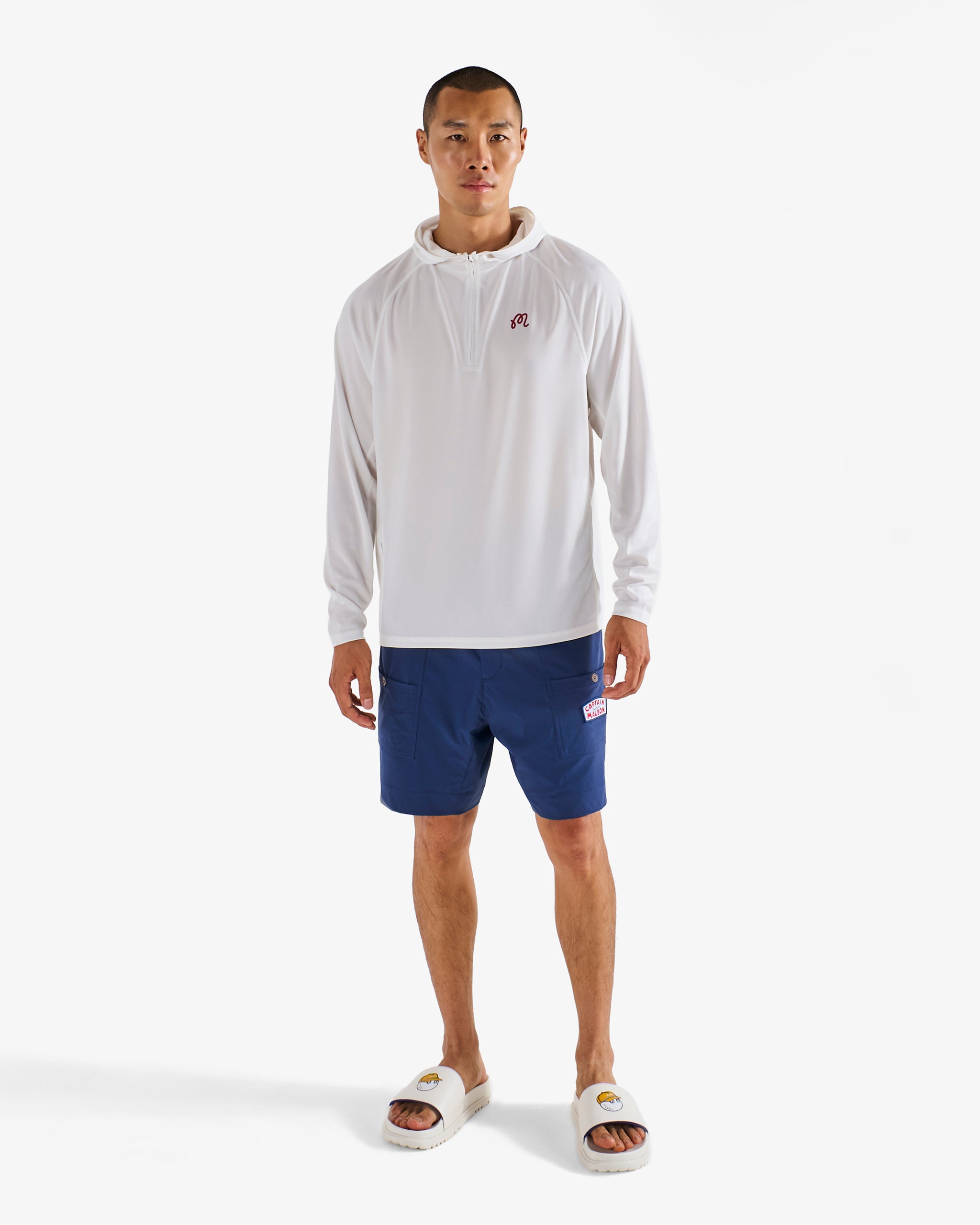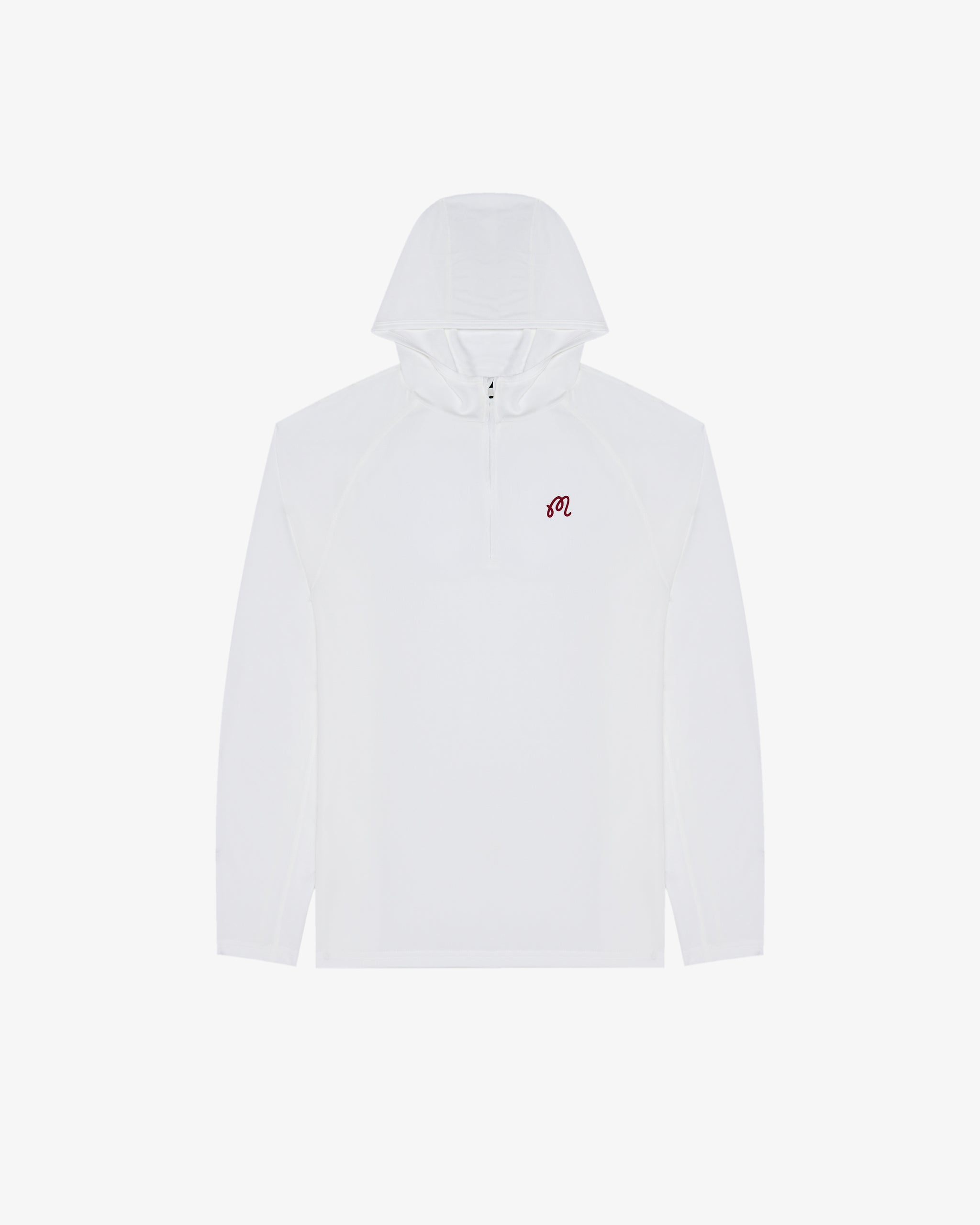 Engineered for all-day protection and ease of movement. our Topside Sunshirt is your go-to layer for sun-soaked rounds and active days outdoors. Designed with perforated underarm panels for enhanced breathability. a quarter zip with hood for adjustable coverage. and raglan sleeves for unrestricted mobility. it’s lightweight. versatile. and built to perform when the heat’s on.